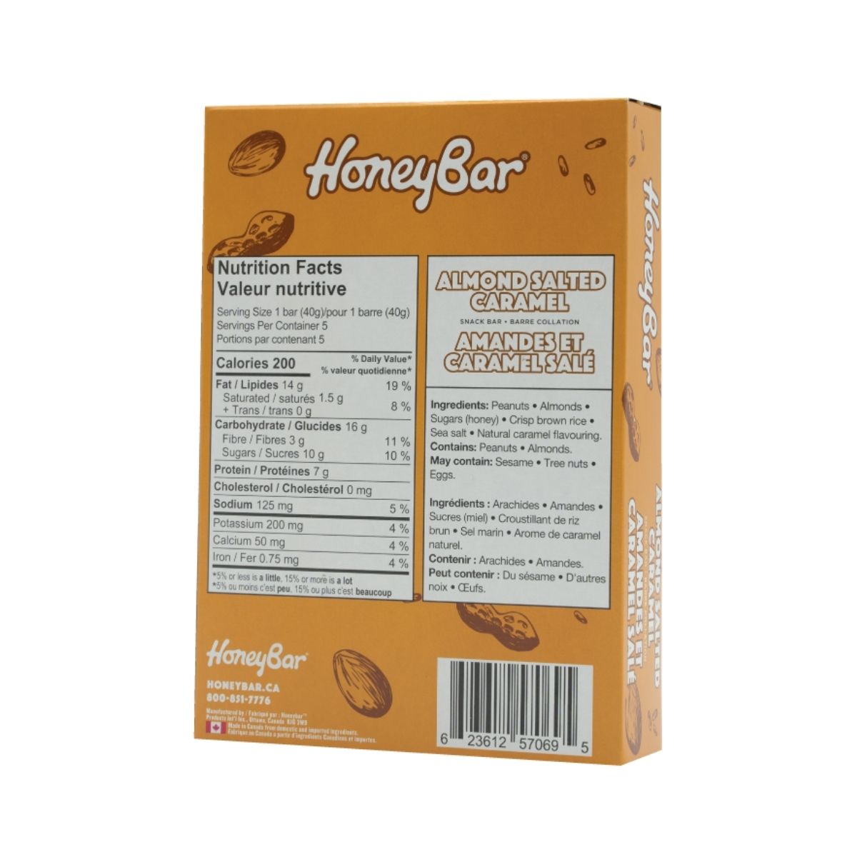 Almonds, Peanuts, Honey, Peanut Butter, Crisp Brown Rice, Sea Salt, Natural Caramel Flavouring.