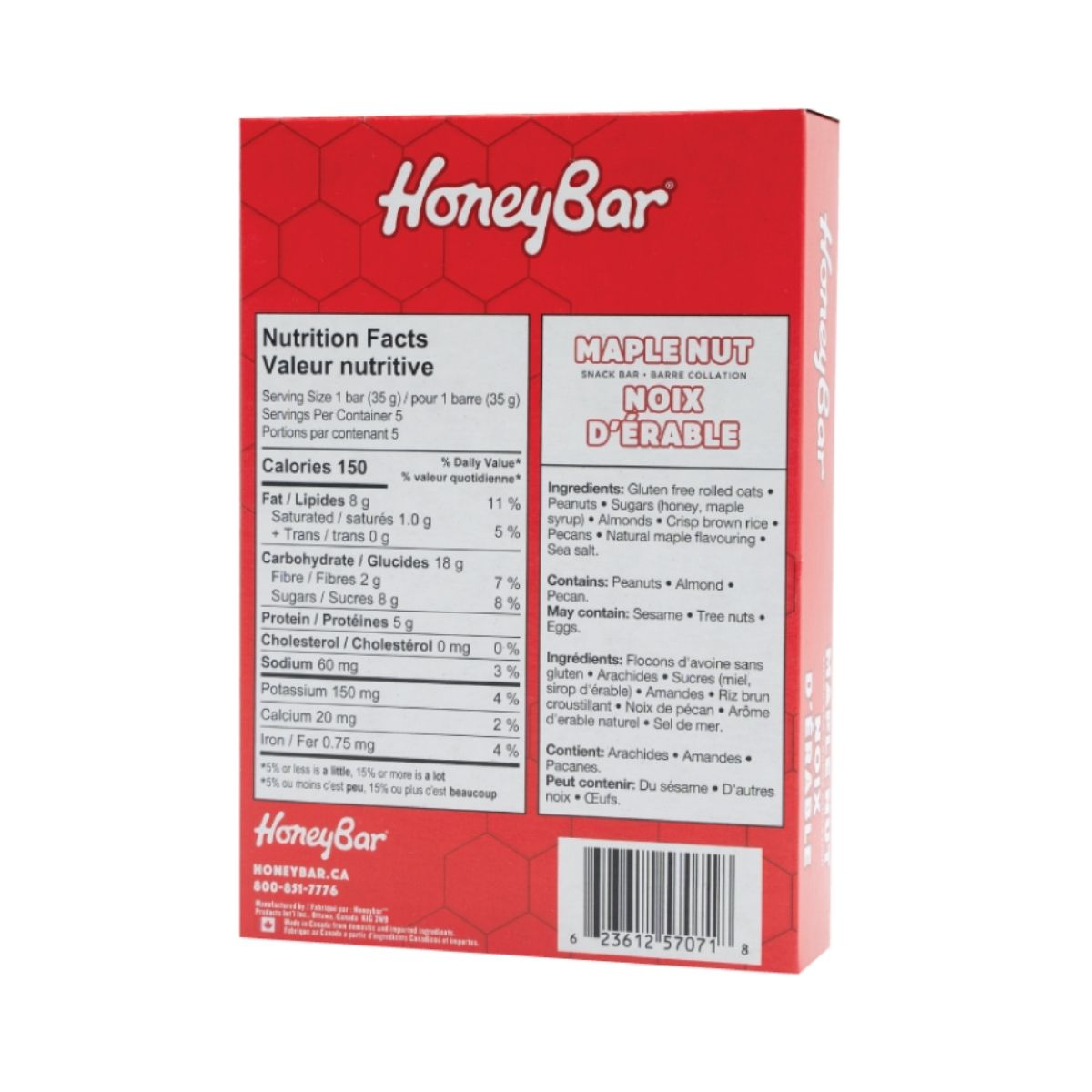 Maple Nut: Gluten free rolled oats, Peanuts, Sugars (honey, maple syrup), Almonds, Crisp brown rice, Pecans, Natural maple flavouring, Sea salt.